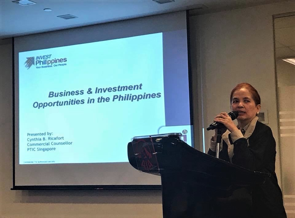 Commercial Counsellor Cynthia Ricafort of the Philippine Trade and Investment Center in Singapore delivered a presentation on Business and Investment Opportunities in the Philippines at the #FinanciallyLiteratePH event held recently in Tampines, Singapore.