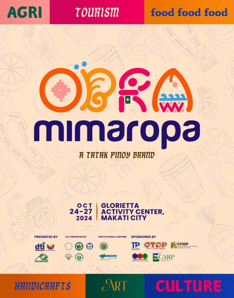 Makati City, Philippines—The Department of Trade and Industry (DTI) is set to hold the Tatak Pinoy: OBRA MIMAROPA, a celebration of the region’s diverse products and talents. This event will take place at the Glorietta Activity Center from 24 to 27 October 2024 to showcase the best of MIMAROPA’s creative industries and local enterprises.