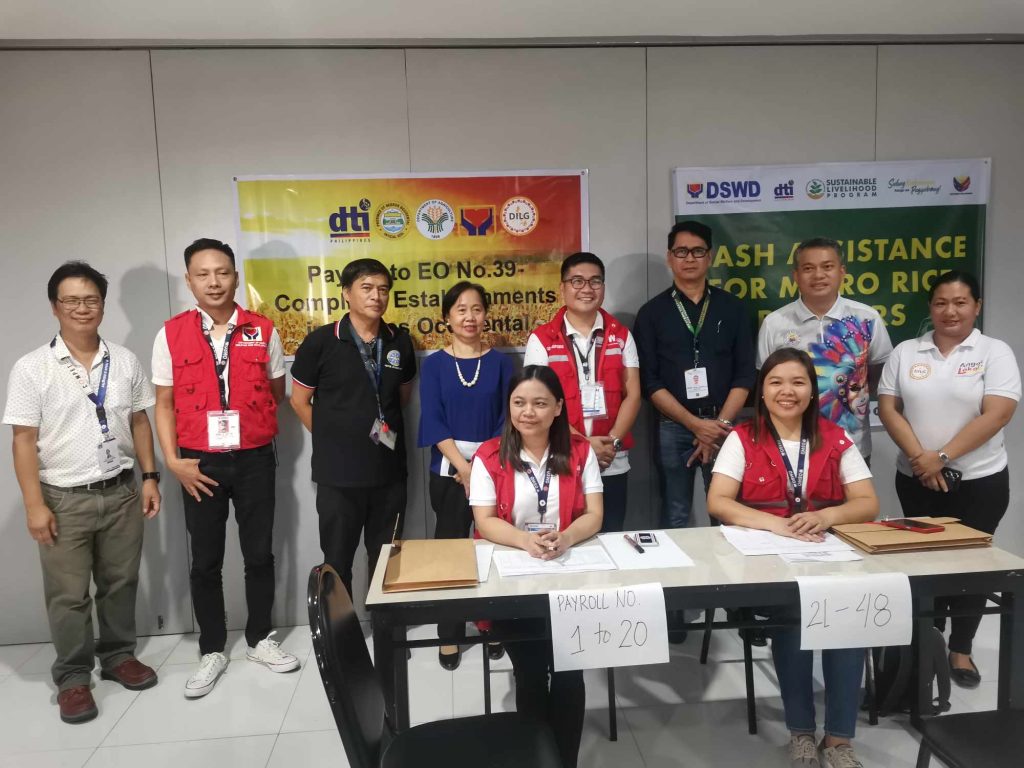 WESTERN VISAYAS — In response to the presidential directives outlined in Executive Order No. 39, the Department of Trade and Industry (DTI) Region VI, along with other implementing agencies such as the Department of Social Welfare and Development (DSWD), Department of Agriculture (DA), National Food Authority (NFA), Department of the Interior and Local Government (DILG), and the Philippine National Police (PNP), initiated the first round of cash assistance distribution on 13-14 September 2023 through DSWD’s Sustainable Livelihood Program (cash assistance for micro rice retailers), which generated 100% turnout rate.