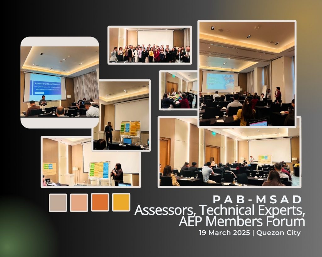Held at Citadines Roces in Quezon City, the forum was centered on several key program updates, which included the Management System Accreditation Division (MSAD) accomplishments for 2024, the progress of the PAB’s Online Accreditation System (OASys), updates on accreditation programs and standards, and a comprehensive review of PAB assessments and the roles of assessors and technical experts. The event served as an important platform to align all stakeholders with the Bureau’s goals, setting the stage for a more efficient and robust accreditation process moving forward.