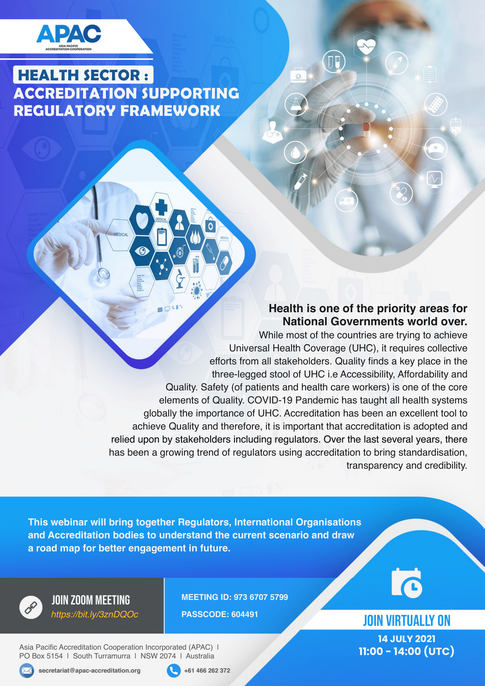 APAC CPC Webinar for Health Regulators on Accreditation, 14 July 2021, 11:00 – 14:00, UTC