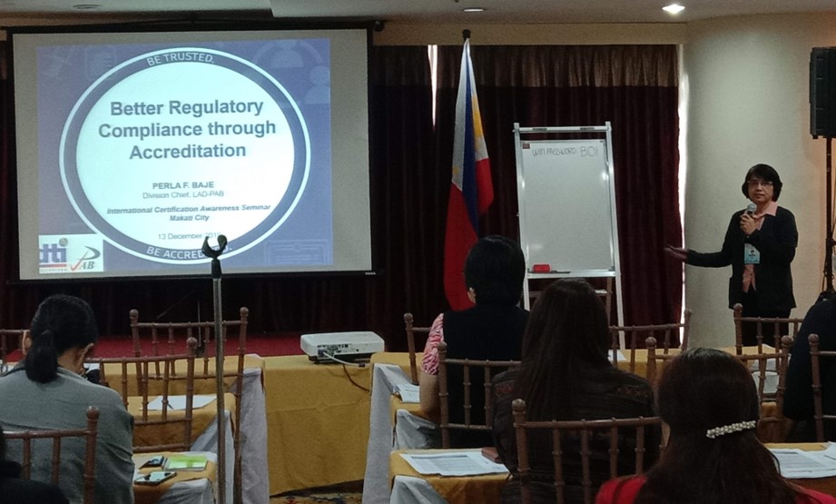 PAB through Ms. Perla F. Baje, the Head of the Laboratory Accreditation Division (LAB) shared how the bureau contributes to better regulatory compliance by performing its mandate of accrediting conformity assessment bodies and working with other agencies to create more streamlined conformity assessment services. Harmonized conformity assessment provides regulators with a means to enforce national health safety and environmental legislation.