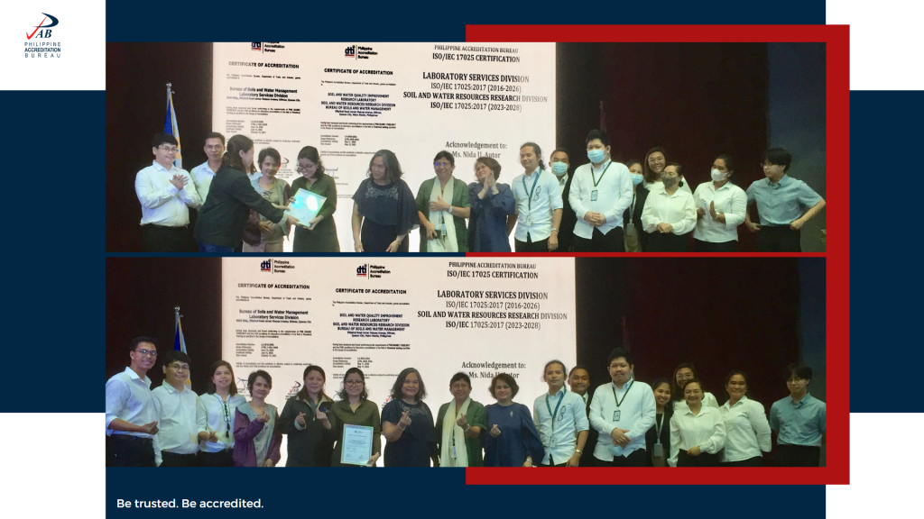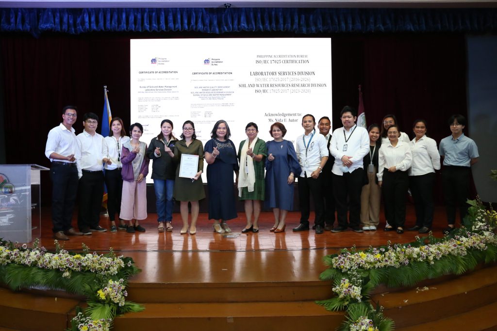 The Department of Trade and Industry – Philippine Accreditation Bureau (DTI-PAB) formally awarded the Certificate of Accreditation to ISO/IEC 17025:2017, in the field of Chemical Testing, to the Department of Agriculture – Bureau of Soils and Water Management – Soil and Water Resources Research Division (DA-BSWM-SWRRD) on 05 June 2023 during the BSWM’s 72nd founding anniversary. The accreditation is based on ISO/IEC 17025:2017 which specifies the requirements of the competence, impartiality and competent operation of testing and calibration laboratories.
