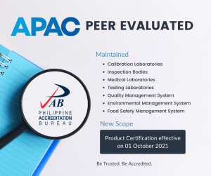 June 25, 2021The Department of Trade and Industry – Philippine Accreditation Bureau (DTI-PAB) is pleased to share the invitation of the Asia Pacific Accreditation Cooperation (APAC) to attend the webinar entitled, “Health Sector: Accreditation Supporting Regulatory Framework,” to be held on 14 July 2021, 11:00 – 14:00, Coordinated Universal Time (UTC). Discussions…Read More -