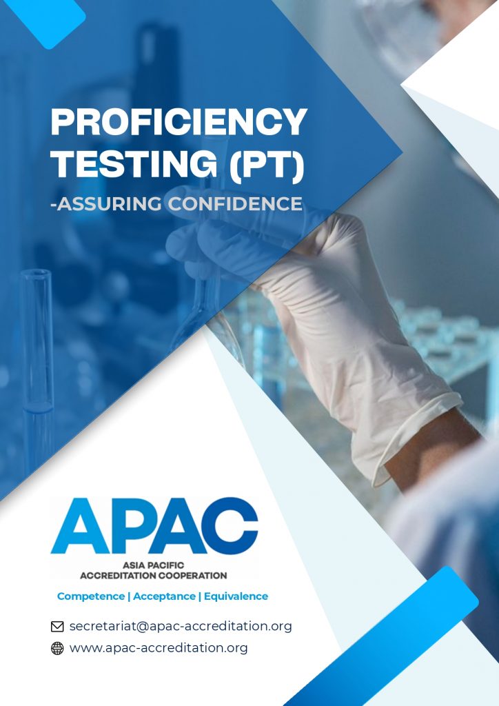 The Asia Pacific Accreditation Cooperation (APAC) has recently completed the brochure “Proficiency Testing (PT) – Assuring Confidence,” to promote accredited proficiency testing services. Please feel free to download and read through this brochure by clicking on the image cover or the link: https://dti-stg.beesites.net/pab/resources /collaterals/.