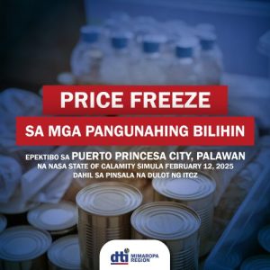 February 21, 2025The Department of Trade and Industry (DTI) MIMAROPA enforced a price freeze on basic necessities in Puerto Princesa City, Narra, Brooke’s Point, and Aborlan, Palawan, due to the devastation caused by the persistent shear line. Given the declarations of the State of Calamity, the prices of basic necessities are...Read More -