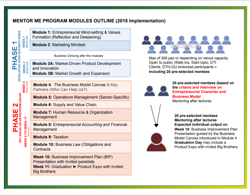 3. Business Information and Advocacy: Conducts training, seminars and dialogues to increase MSMEs productivity and efficiency, such as but not limited to product development; access to market; access to finance; entrepreneurial, managerial, and skills training.