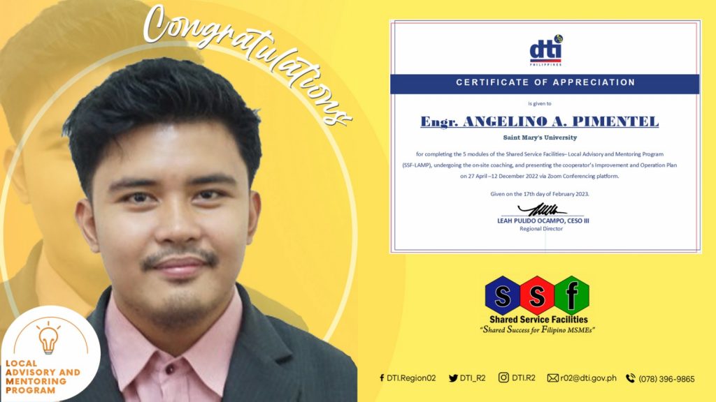 - Engr. Angelino Pimentel of Saint Mary’s University – Nueva Vizcaya Fabrication Laboratory