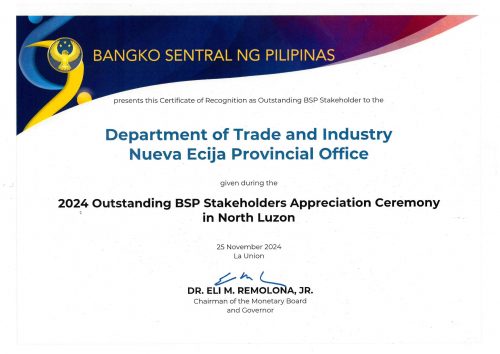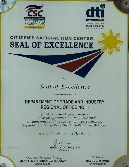Region 3 Certifications and Awards SHARE THIS: More Address Malikhain St. cor. Maagap St. Diosdado Macapagal Government Center, Maimpis, City of San Fernando, Pampanga Email: [email protected] Follow: Services Delivering services that move industries forward and bring value to every Filipino Business Center Trade & Opportunities Consumer Space Knowledge Hub Apply for a Business Name Business Registration and Permits Closing a Business Start and Grow Your Business E-Commerce Apply for a Trustmark Exports Attend Trainings and Seminars Imports Conformity Assessment Bodies Accreditation Domestic Trade Exchange The 7Ms of Successful Entrepreneurs Strategic Trade Supply Chain and Logistics MSME Resources Programs and Projects Zero to Hero View More Investments Career Opportunities PhilGEPS Procurement BAC Resources Manufacturing Resurgence Industry Clusters Roadmap Programs and Projects View More Check the Latest Prices File a Complaint Consumer Education Product Standards and Conformance Newly Accredited and Licensed Business Accreditation Programs and Projects View More E-library Laws and Policies Media Statistics Downloadable Forms Frequently Asked Questions (FAQs) Tariff Resources View More