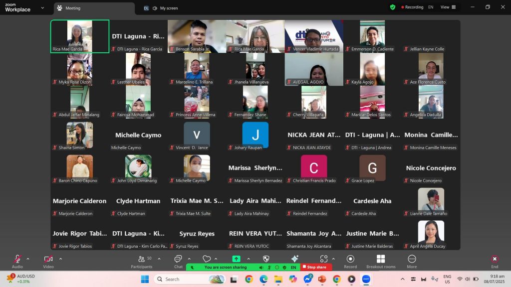 Victoria, Laguna — In celebration of National MSME Week 2025, the Department of Trade and Industry (DTI) – Laguna Provincial Office launched a week-long series of webinars designed to empower micro, small, and medium enterprises (MSMEs) through a well-rounded approach that integrates financial empowerment, customer engagement, and mental wellness.