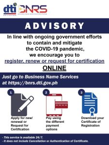 The DTI issued Department Administrative Order (DAO) No. 16-01 last April 22, 2016 which provides guidelines on registering BMBEs at Negosyo Centers. Under DAO 16-01, DTI is the sole agency which shall issue a Certificate of Authority (CA) to registered BMBEs at Negosyo Centers or at DTI offices where Negosyo Centers have not been set up.